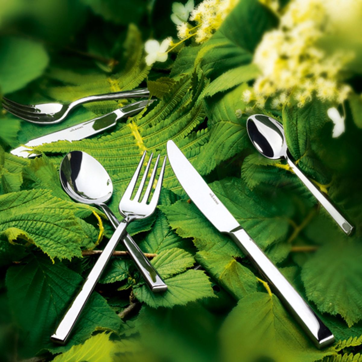 Edles Besteckset von WILKENS in Edelstahl für 12 Personen: Set besteht aus je 12 Menülöffel, Menügabel, Menümesser, Kaffeelöffel, Kuchengabel.