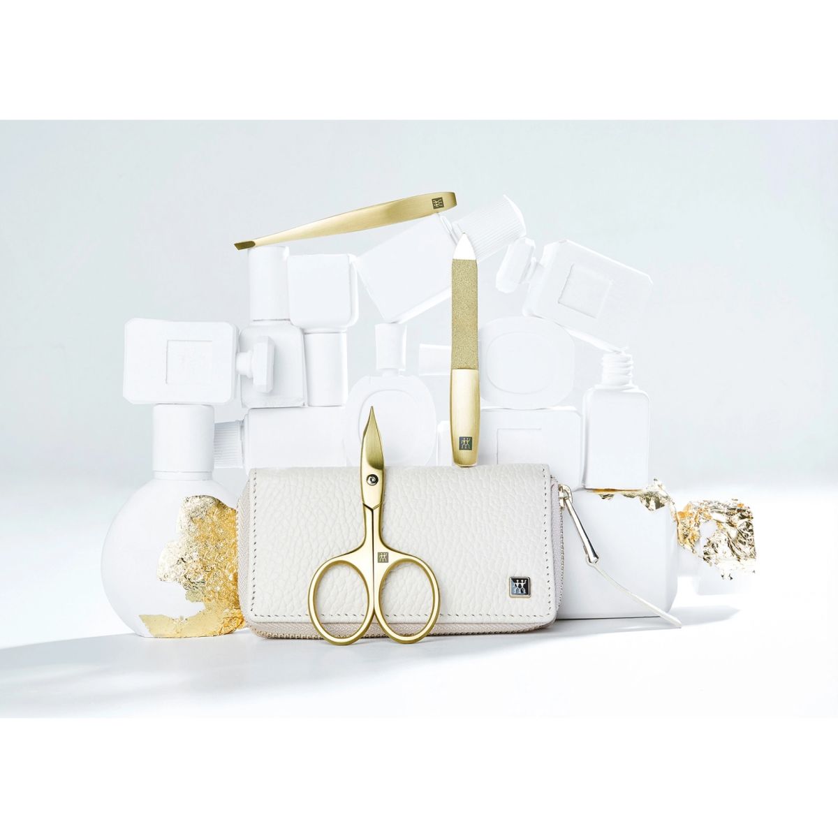 Bestehend aus Nagel- und Hautschere, Saphir-Nagelfeile und schräger Pinzette