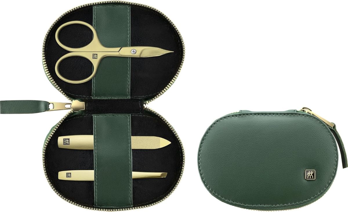 Das luxuriöse, 3-teilige Zwilling Premium Nagelpflege-Set im veganen Apfelleder-Etui mit Reißverschluss ist platzsparend, praktisch und sowohl auf Reisen als auch bei der täglichen Pflege vielseitig einsetzbar.