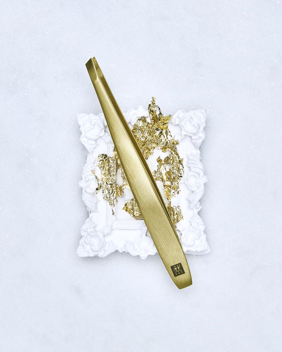 Die edle, gold-farbene Pinzette aus der TWINOX® Gold Edition ist ein formschönes Hilfsmittel für die perfekte Augenbrauen-Konturierung. Aufgrund ihrer ergonomischen Form liegt sie besonders gut in der Hand und ermöglicht das präzise Zupfen von Augenbrauen oder sonstiger unerwünschter Härchen. Hochqualitativer, rostfreier Edelstahl mit einem edlen gold-farbenen Finish in präziser Verarbeitung machen die Pinzetten zu einem langlebigen Begleiter. Ihre leistungsstarke und hochmoderne PVD-Beschichtung macht das Präzisionsinstrument besonders reibungs-, verschleiß- und korrosionsbeständig. Kurz gesagt bietet die schräge Pinzette der TWINOX® Gold Edition Pflege auf höchstem Niveau, während sie den Charme des traditionellen Goldtons in die Moderne transportiert.